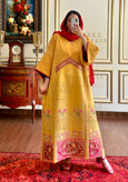جنس : اپلیکه دوزی هنر دست و گلدوزی سرمه دوزی برجسته روی زمینه کرپ و ابریشم شیشه ای